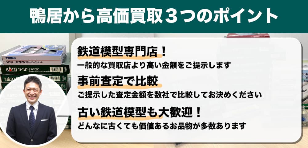 鴨居駅周辺にお住まいで、ご自宅に眠っている鉄道模型がございましたら、まずは当店の無料出張査定をお試しください。KATO 10-1447で26,000円、TOMIX 98688で14,300円など、思わぬ高額査定になる可能性があります。